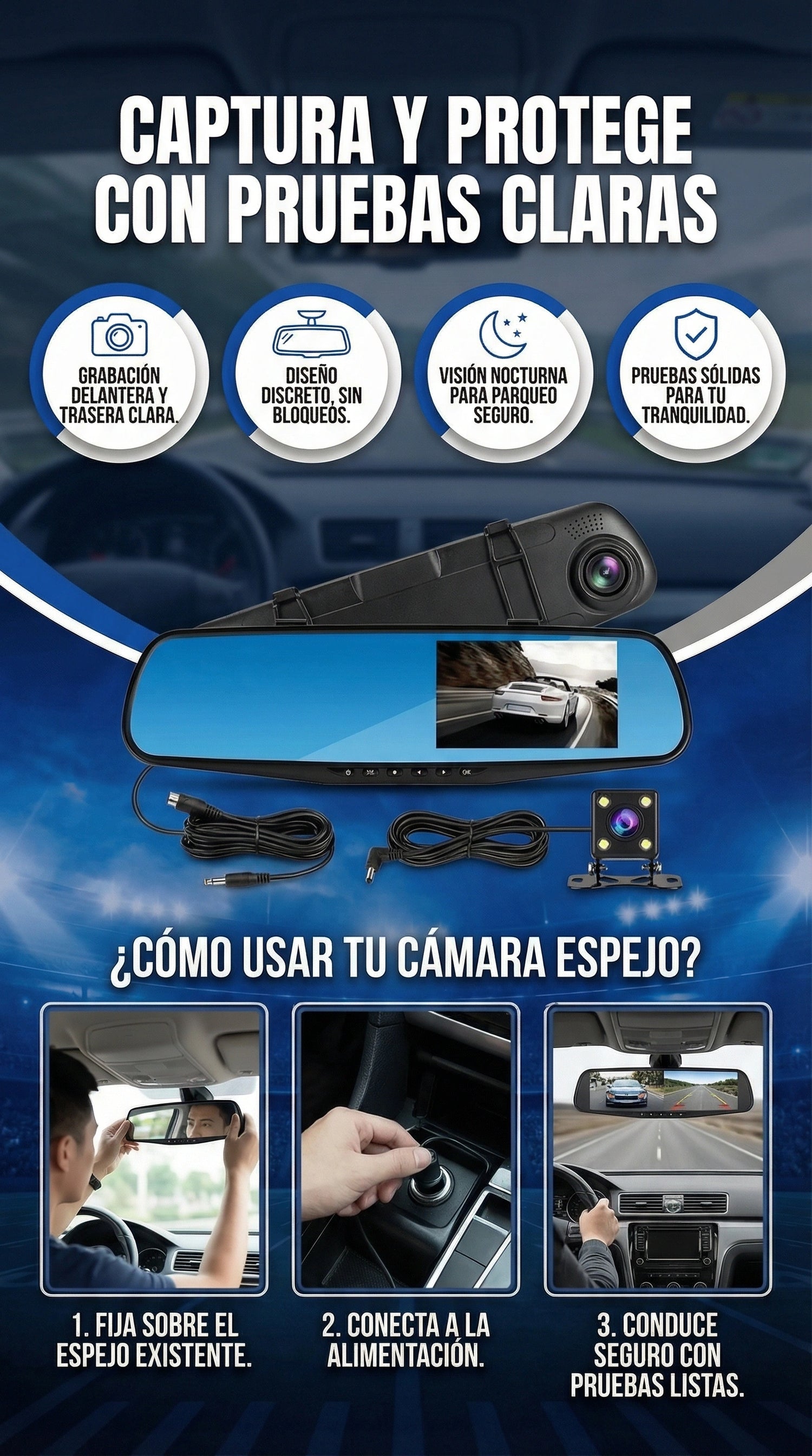 Claro que si, se instala sobre el mismo retrovisor y la cámara trasera se instala de forma sencilla.