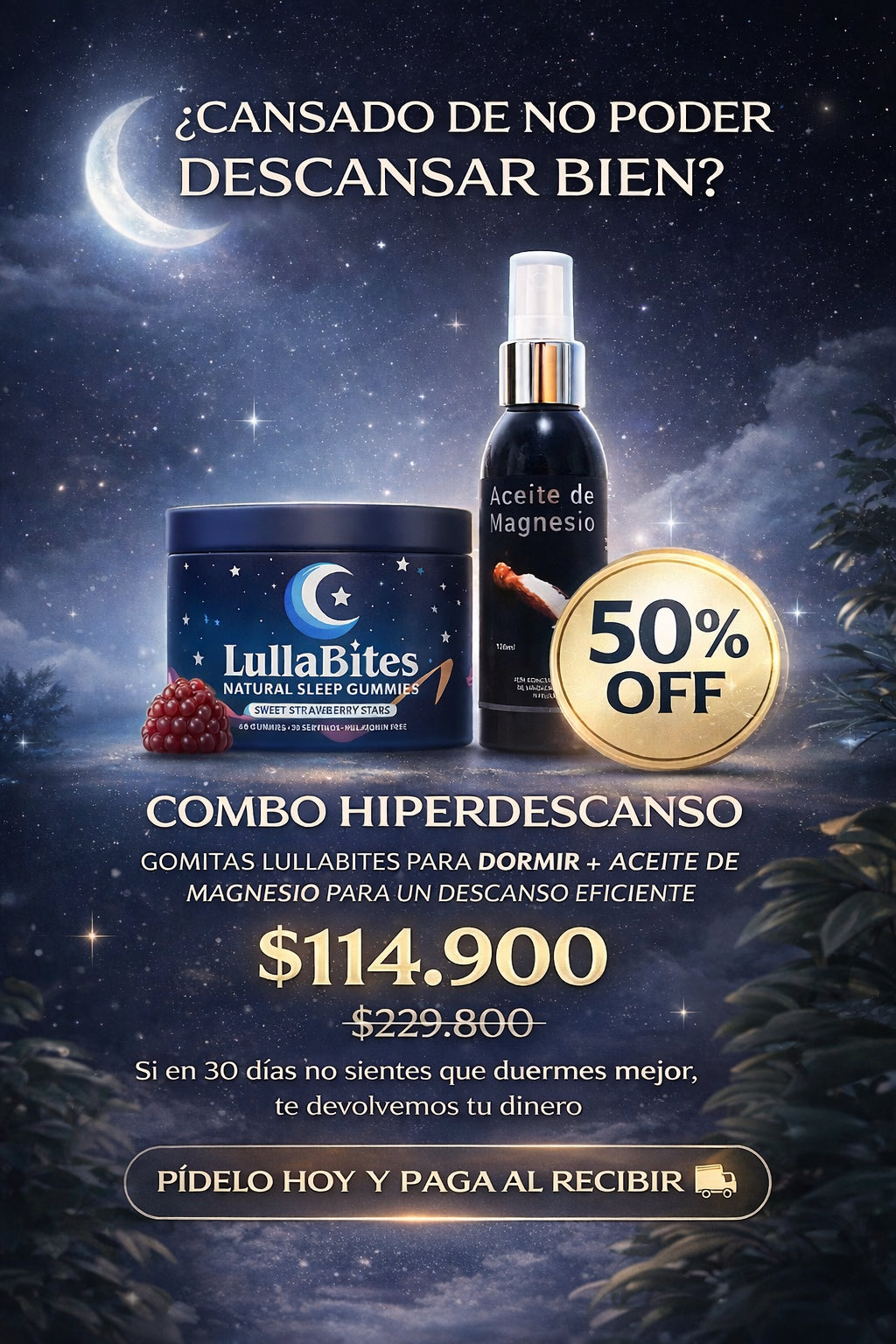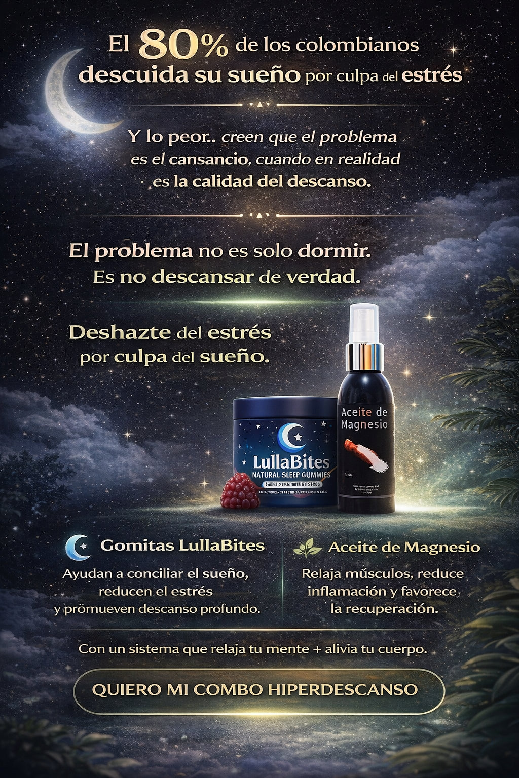 Nuestro COMBO HIPERDESCANSO está diseñado estratégicamente para que las gomitas y el aceite trabajen en conjunto y potencien los resultados desde la primera semana.