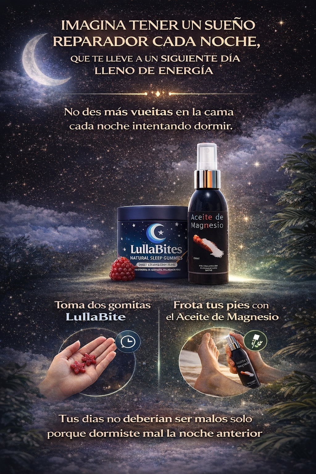 Solo 2 gomitas 30 minutos antes de dormir. Así de simple. Sin rutinas complicadas, sin pastillas difíciles de tragar.